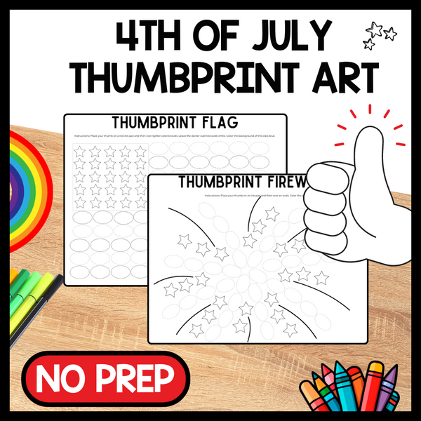 Materials Needed: Ink pad or paint (red & blue recommended), thumbprint flag/firework pages. You can also use bingo dotters to paint the students’ thumbs (works just as good). I also keep wet wipes near by! I recommend washable ink!