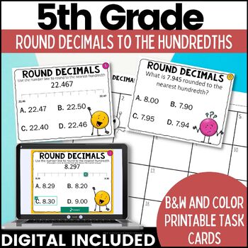 Do you need a free ready-to-go math center for your 5th-grade students? I have easy to use and engaging round decimals to the hundredths math skill task cards that come in both the print version and digital. This is a huge timesaver when you need to check your student's understanding of Common Core Math Skills.