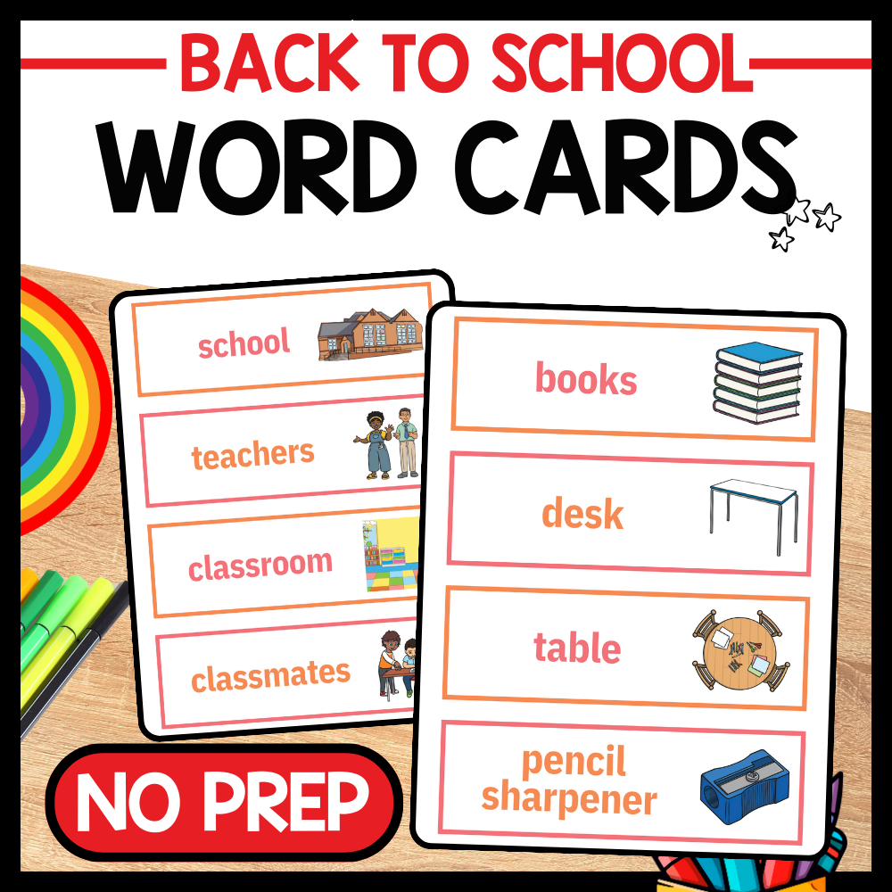 Enhance vocabulary development in your literacy corner or on your classroom word wall with our Back to School Word Cards.