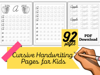 Our brand new ‘Cursive Handwriting Workbook for Kids’ has been expertly created to provide children with the best way of learning cursive writing, filled with tons of practice pages for each letter of the alphabet and awesome images you are sure to have an absolute blast!