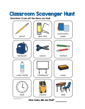 Back-to-School Scavenger Hunt - School Objects - Speech Therapy Activity