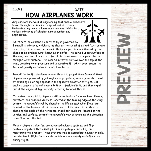 - "HOW AIRPLANES WORK" AVIATION DAY Reading Comprehension