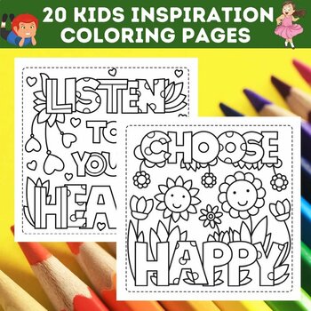 This is a printable 20 inspirational quotes for kids coloring pages bundle. Kids will happily color these cute coloring pages full of inspirational messages made just for them.