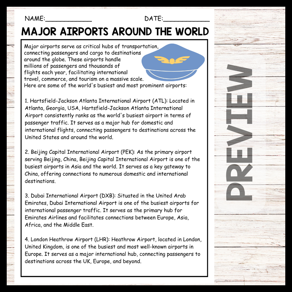 - "MAJOR AIRPORTS AROUND THE WORLD" AVIATION DAY Reading Comprehension