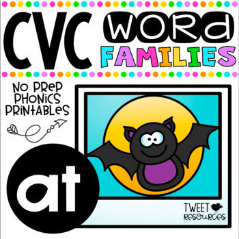 Please enjoy this Word Work 'AT' freebie which is a sample of some of the activities you can find in each of Tweet Resources's CVC Word Family packages. This freebie is a sample of one of the many word family packages that are now available, and is also included in "Let's Learn CVC Word Families" bundle.