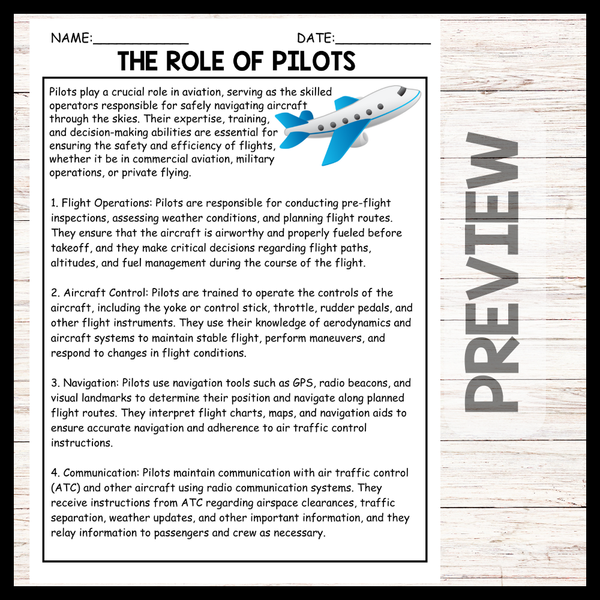 - "THE ROLE OF PILOTS" AVIATION DAY Reading Comprehension