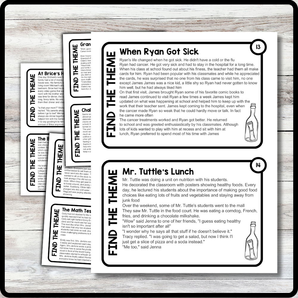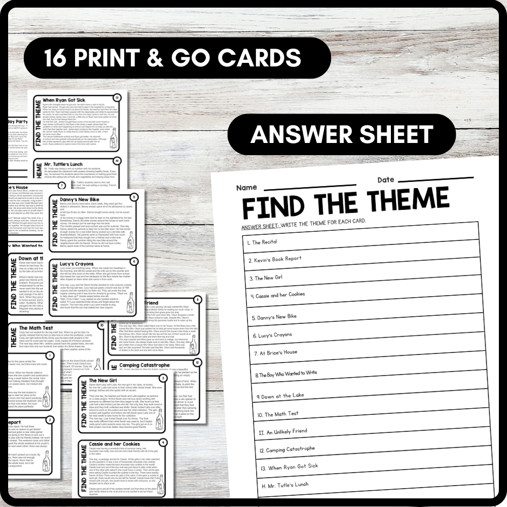 - Theme Task Cards with Print & Digital Versions Activity Reading Differentiation