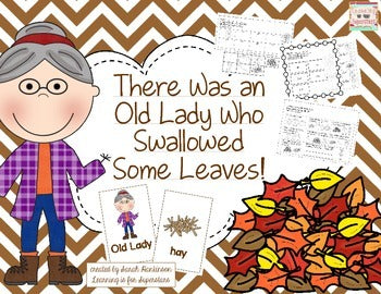 Do you need some quick activities for the story There Was an Old Lady Who Swallowed Some Leaves? Look no further! This unit has 9 colored picture cards, along with 5 printables. The printables include alphabetical order, picture and word labels, sequencing, writing, and comprehension check.