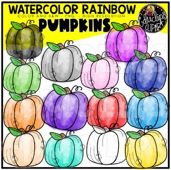 - Watercolor Wash Rainbow Pumpkins {Educlips Clipart}