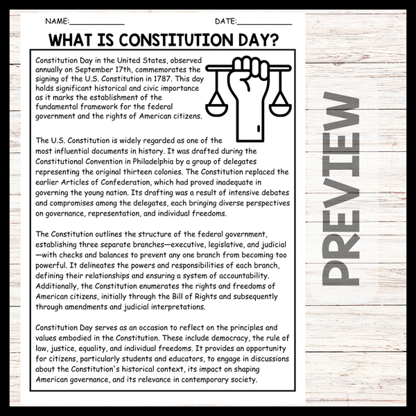 By using this passage, teachers can effectively convey to students the structure of the federal government with its checks and balances among the executive, legislative, and judicial branches. It also underscores the importance of constitutional rights and freedoms, initially articulated in the Bill of Rights and expanded through subsequent amendments. Beyond historical context, the passage encourages discussions on democratic principles, justice, equality, and individual liberties, fostering critical thinking and civic engagement among students.