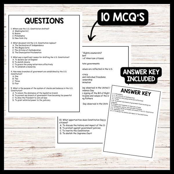 The resource includes a reading passage, 10 multiple-choice questions, and an answer key, making it ready to print without the need for additional preparation.