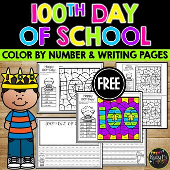 - 100th Day of School Activities Color by Number and Writing Pages