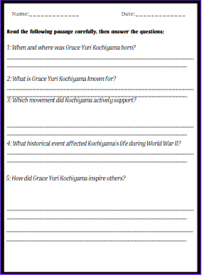 AAPI Heritage Month Yuri Kochiyama Biography - Reading Comprehension & Questions