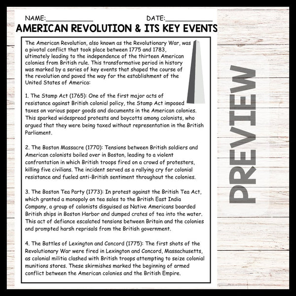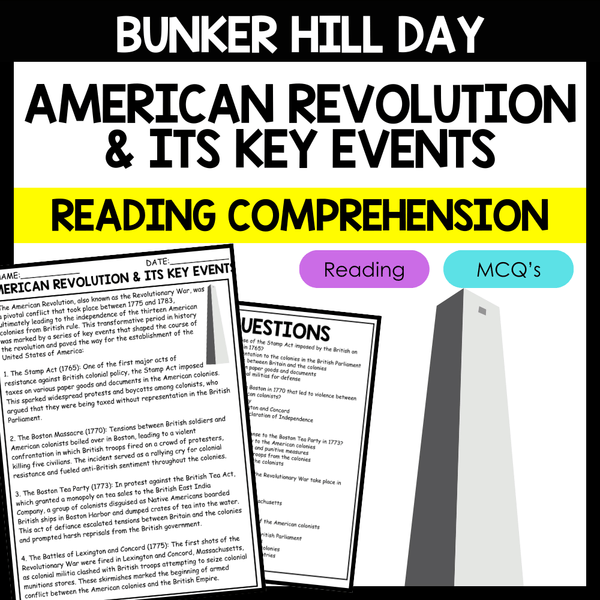 - "AMERICAN REVOLUTION & ITS KEY EVENTS" BUNKER HILL DAY Reading Comprehension