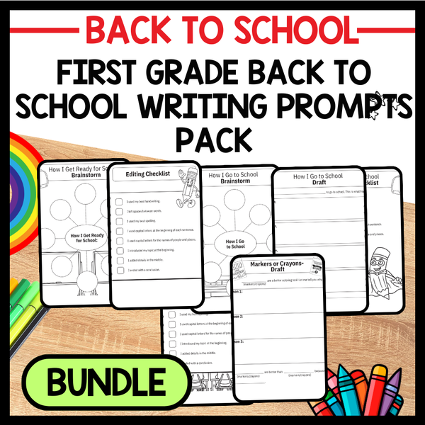 Utilize this First Grade Back to School Writing Prompts Pack to support your students in mastering the writing process.