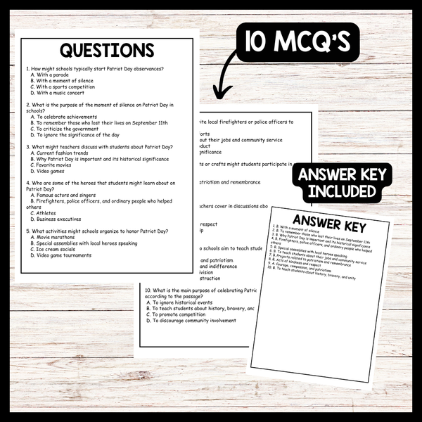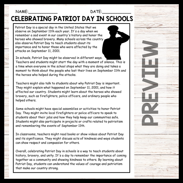 - Celebrating Patriot Day in Schools Reading comprehension and Questions