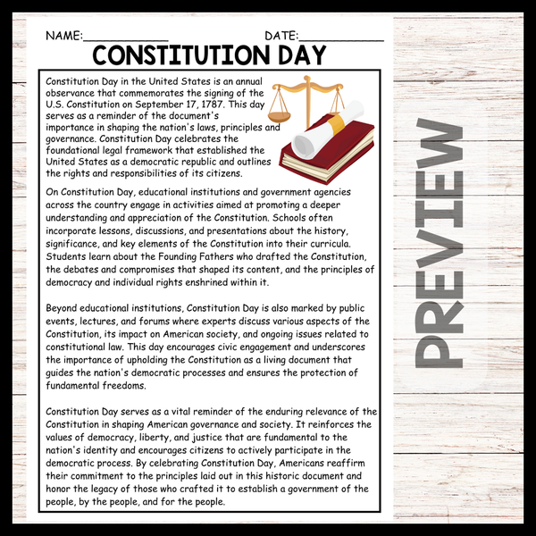 The passage provides a comprehensive overview of Constitution Day in the United States, emphasizing its educational significance and broader societal impact. For teachers, this passage serves as a valuable resource to enrich classroom discussions and lessons about the U.S. Constitution. It outlines various activities and themes associated with Constitution Day, such as studying the Founding Fathers, exploring constitutional principles like democracy and individual rights, and discussing the historical context of its drafting.