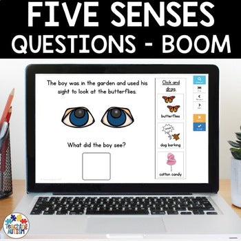 Do your students need to work on their five senses skills? Are you looking for online resources to use with your special education students for working on question and answering skills? Do your students love to use Boom cards? If so, this free five senses questions Boom deck is perfect to use for distance learning.