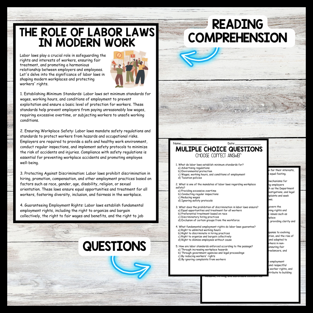 Grow your students knowledge with this Nonfiction Reading Comprehension Passage - Labor History Month - Role of Labror LAwS