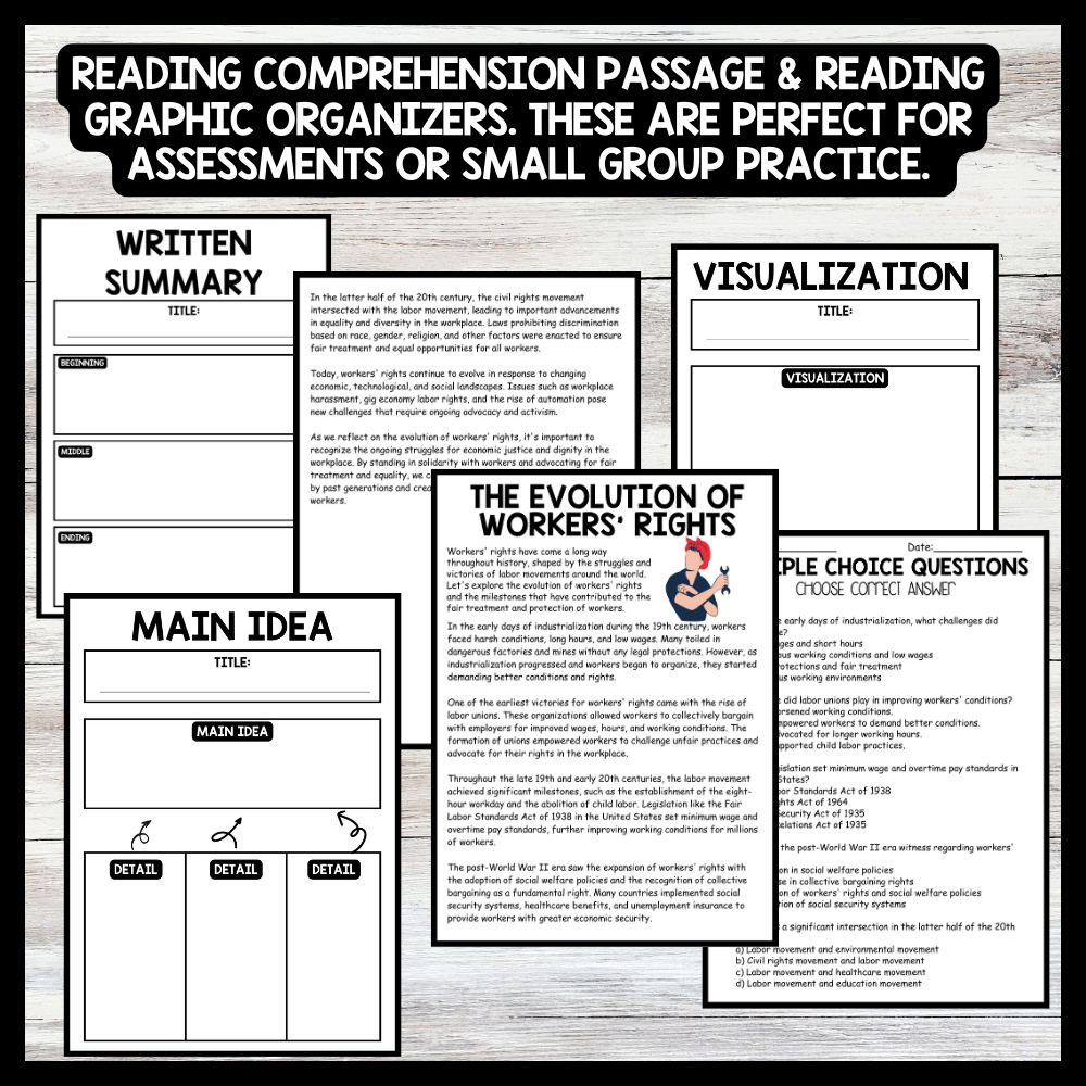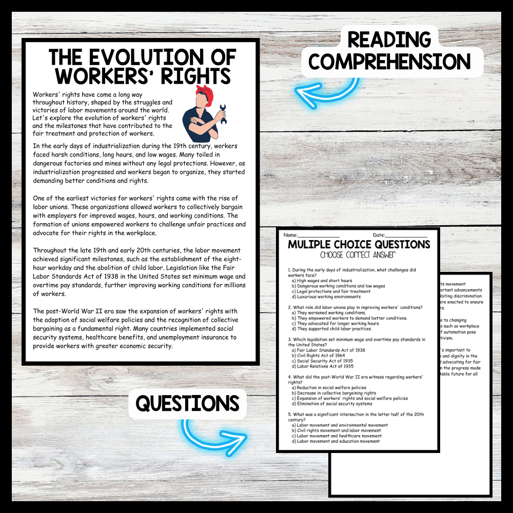 Grow your students knowledge with this Nonfiction Reading Comprehension Passage - Labor History Month - The Evolution of Workers' Rights