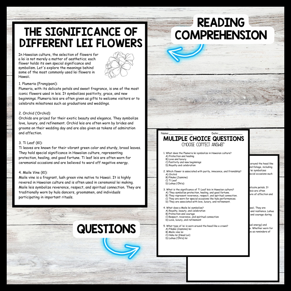 Grow your students knowledge with this Nonfiction Reading Comprehension Passage - LEI Day - Lei Flowers