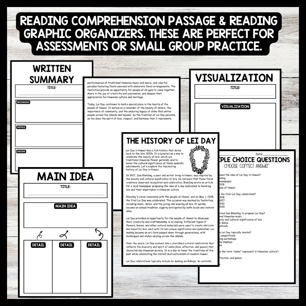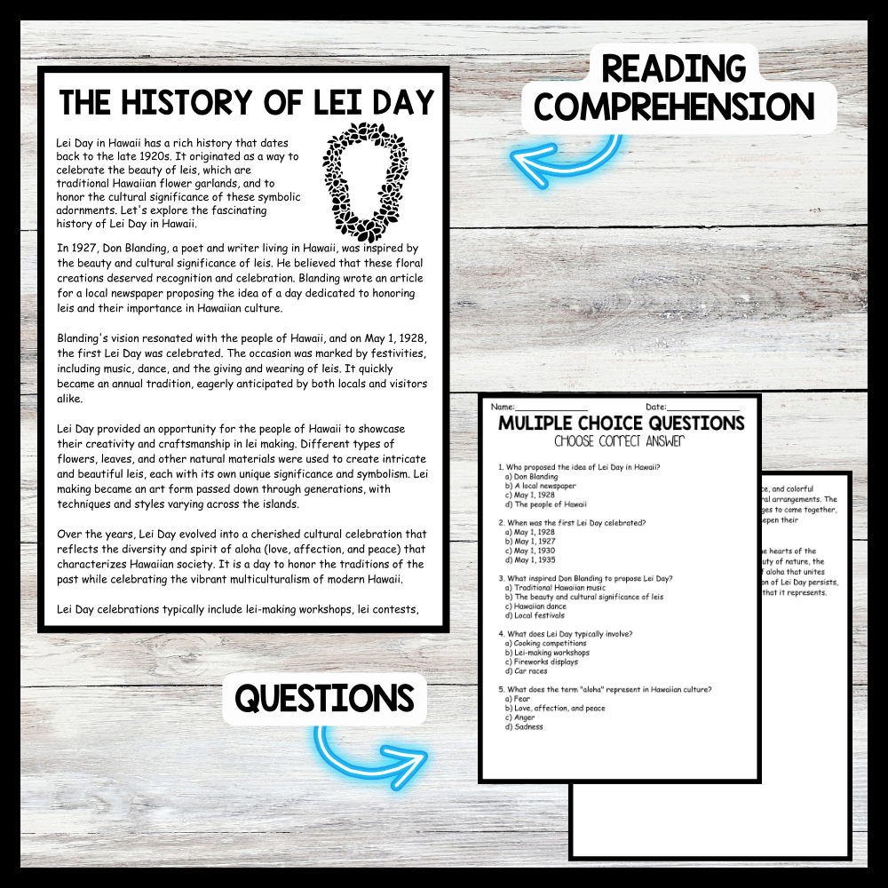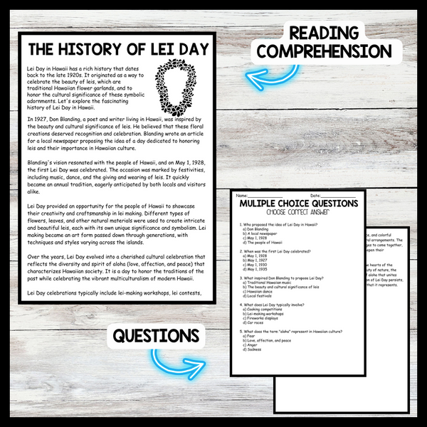 Grow your students knowledge with this Nonfiction Reading Comprehension Passage - LEI Day - The History of LEI Day in Hawaii