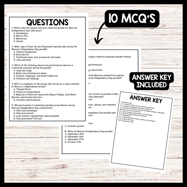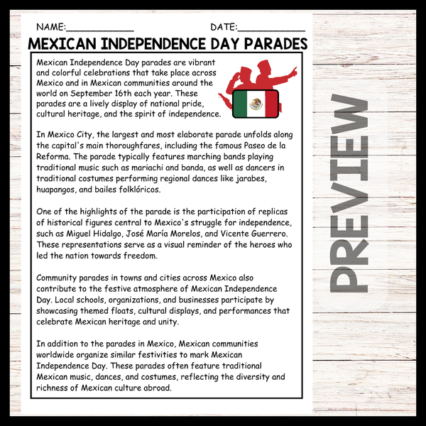 - Mexican Independence Day Parades Reading comprehension and Questions