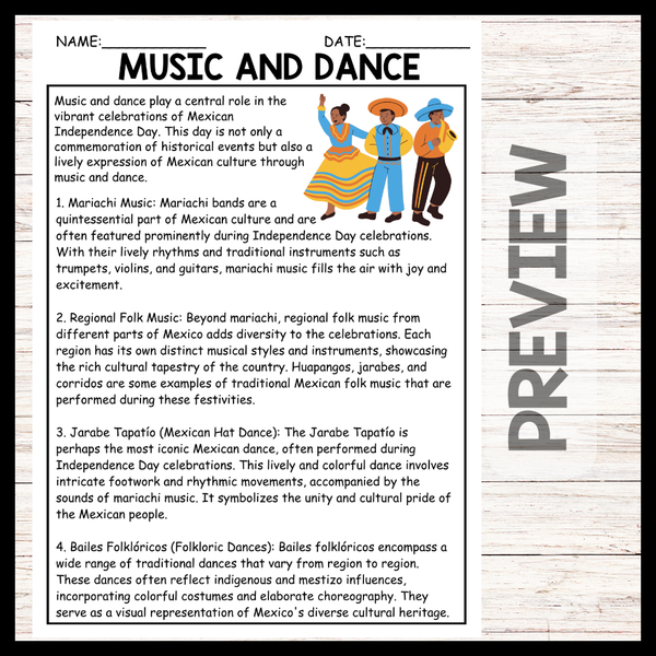 - Music and Dance on Mexican Independence Day Reading comprehension and Questions