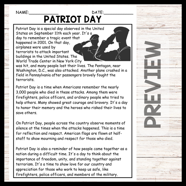 - Patriot Day Reading comprehension and Questions