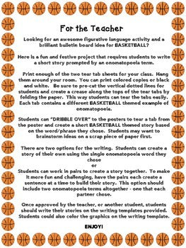 Print enough of the two tear tab sheets for your class. Hang them around your room. Each of the 18 tabs contains a different BASKETBALL themed example of onomatopoeia.