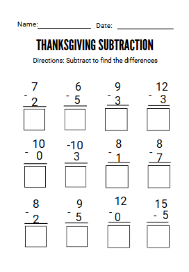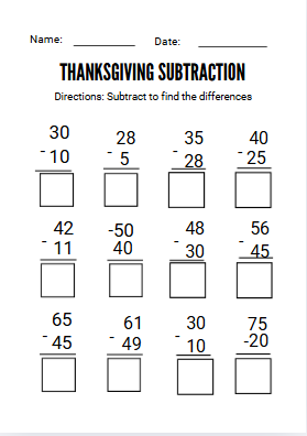 - Thanksgiving subtraction Math Activity No Prep Worksheets