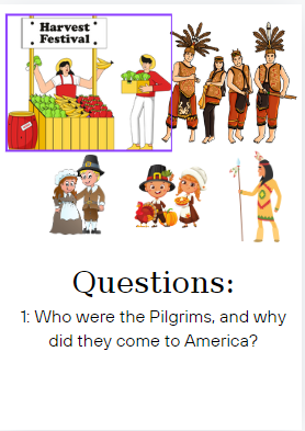 The First Thanksgiving / Thanksgiving reading comprehension passages with Questions