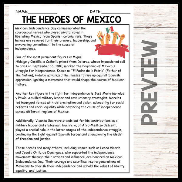 - The Heroes of Mexican Independence Day Reading comprehension and Questions