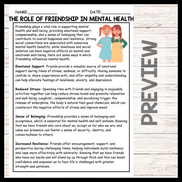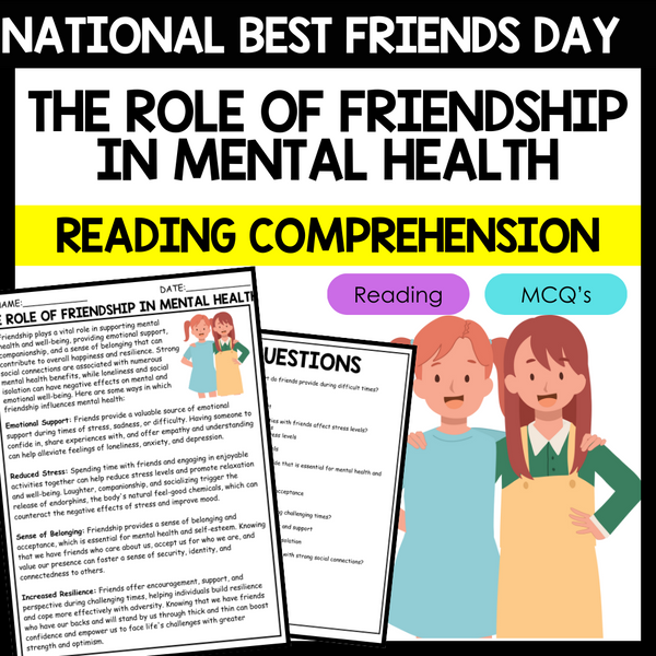 - "THE ROLE OF FRIENDSHIP IN MENTAL HEALTH"NATIONAL BEST FRIENDS DAY Reading Comprehension