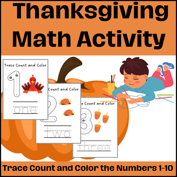 The Trace, Count, and Color the Numbers 1-10 Thanksgiving Math Activity is a festive learning activity designed for young children to practice tracing, counting, and coloring numbers 1 through 10. This Thanksgiving-themed worksheet encourages fine motor skills, number recognition, and...View more