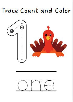 Trace Count and Color the Numbers 1-10 Thanksgiving Math Activity