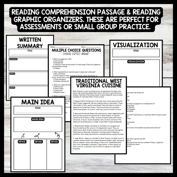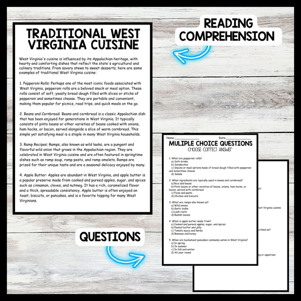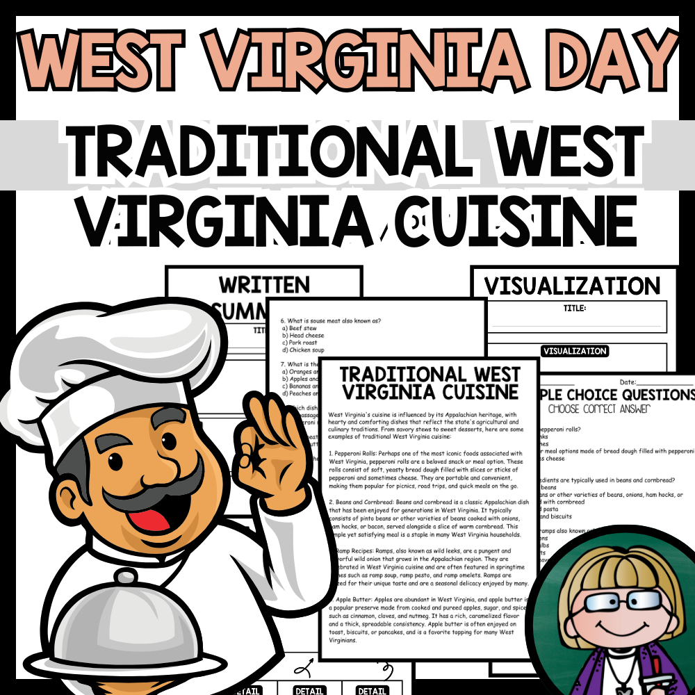 Grow your students knowledge with this Nonfiction Reading Comprehension Passage - West Virginia Day - Traditional West Virginia Cuisine