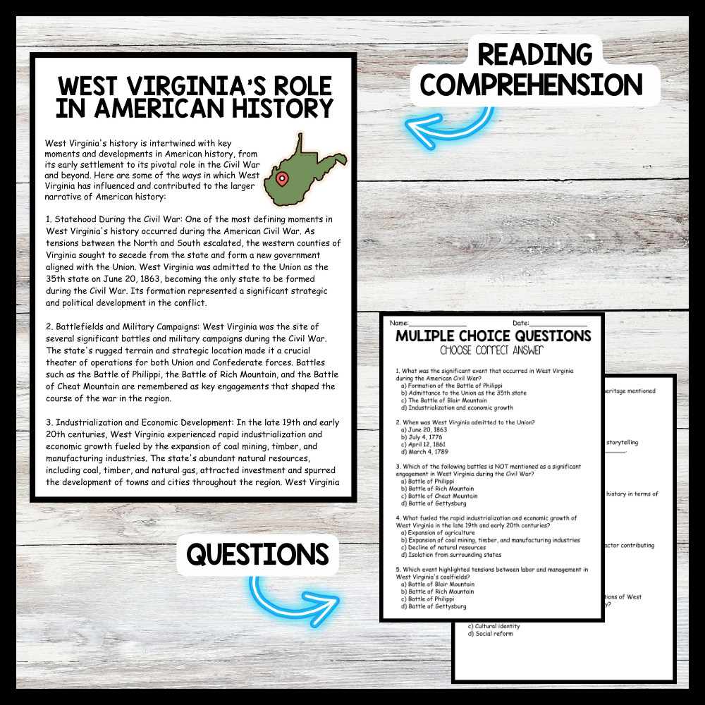 Grow your students knowledge with this Nonfiction Reading Comprehension Passage - West Virginia Day - West Virginia's Role in American History
