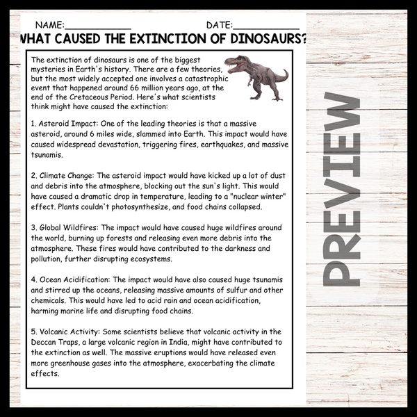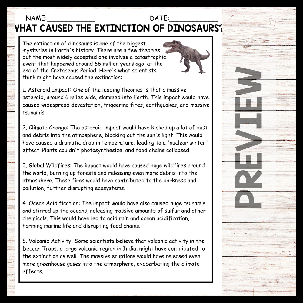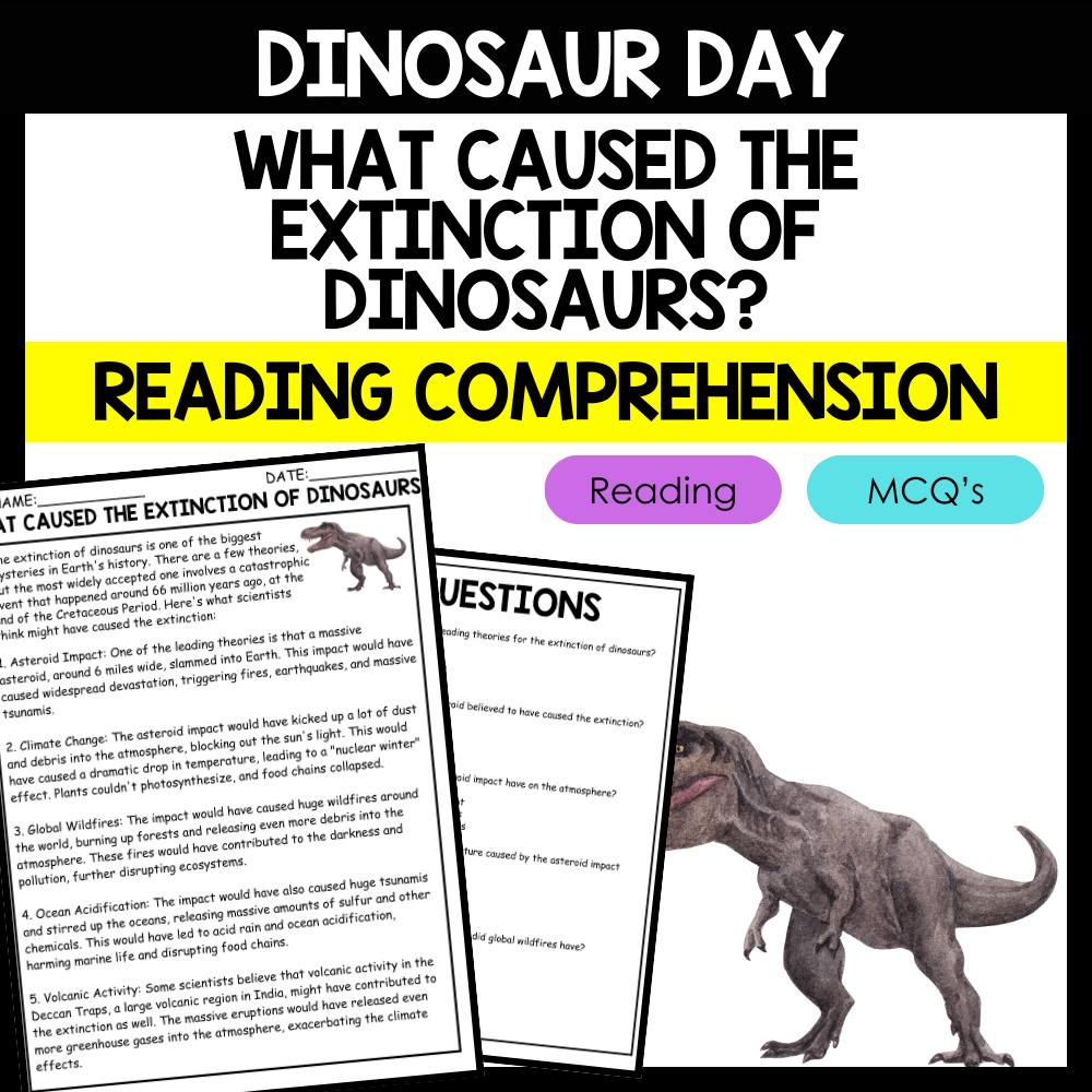 - "WHAT CAUSED THE EXTINCTION OF DINOSAURS?" DINOSAUR DAY Reading Comprehension