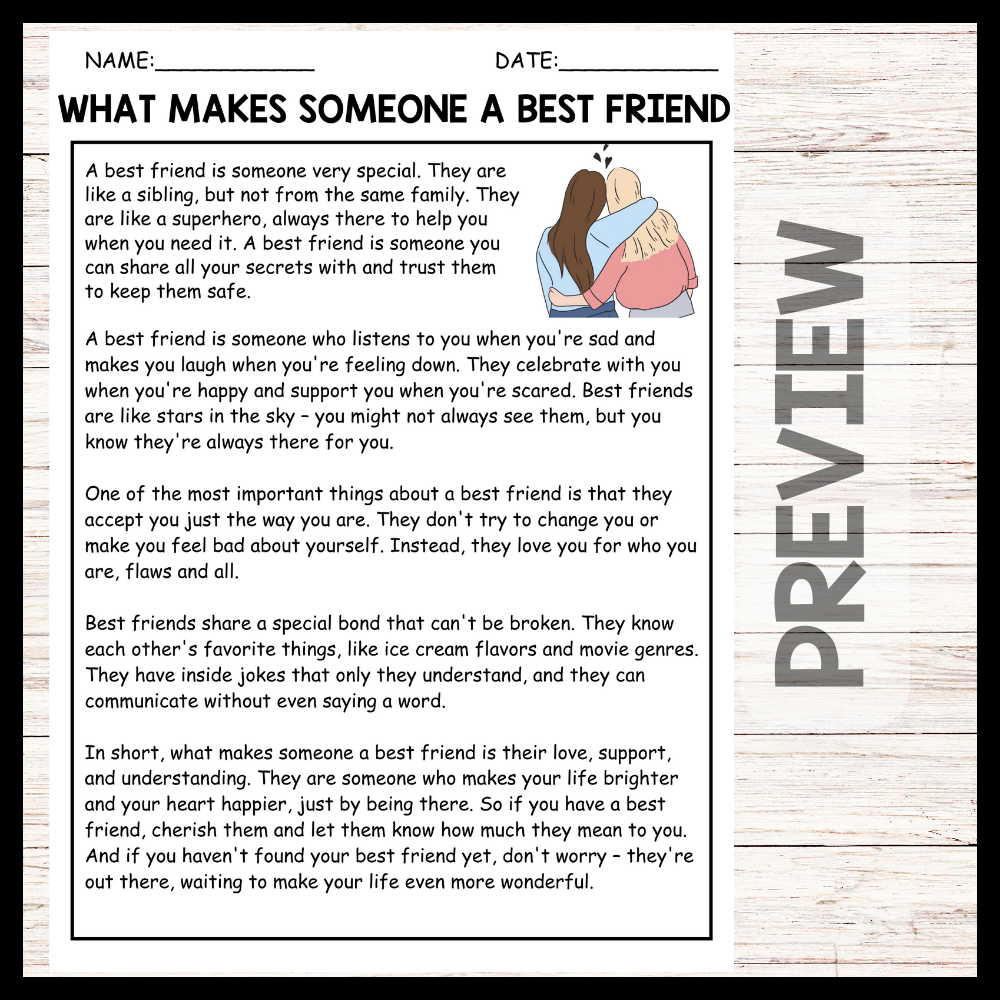 - "WHAT MAKES SOMEONE A BEST FRIEND"NATIONAL BEST FRIENDS DAY Reading Comprehension