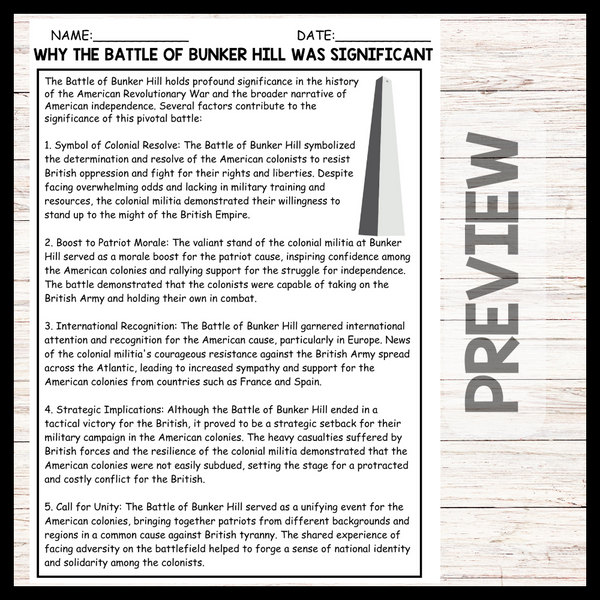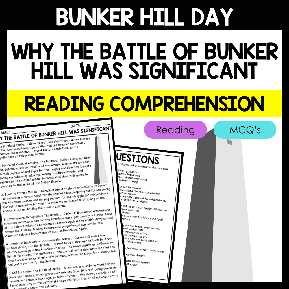 - "WHY THE BATTLE OF BUNKER HILL WAS SIGNIFICANT" BUNKER HILL DAY Reading Comprehension
