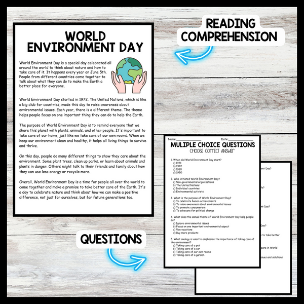 Grow your students knowledge with this Nonfiction Reading Comprehension Passage - World - Environment Day