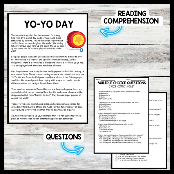 Grow your students knowledge with this Nonfiction Reading Comprehension Passage - Yo-Yo Day - Yo-Yo Dayz