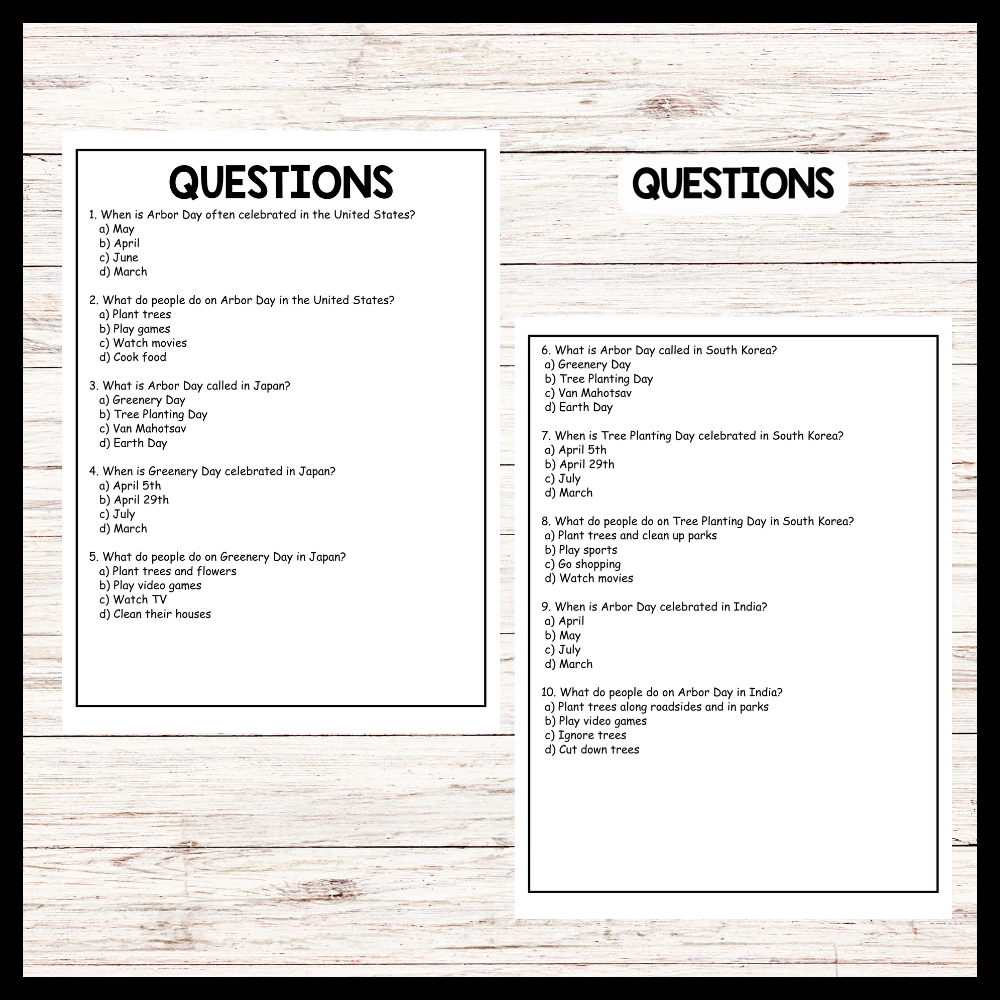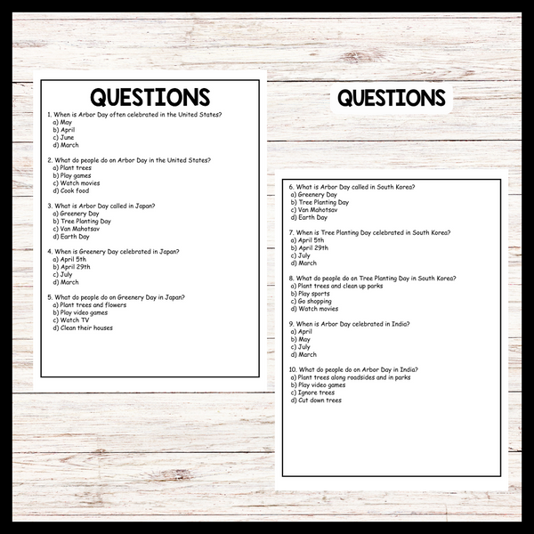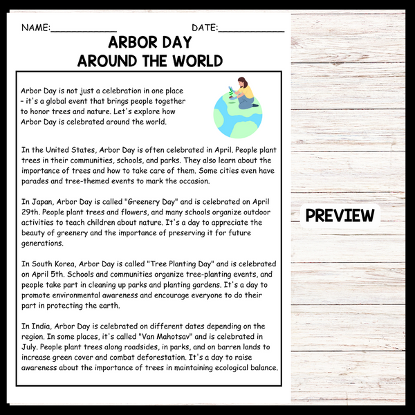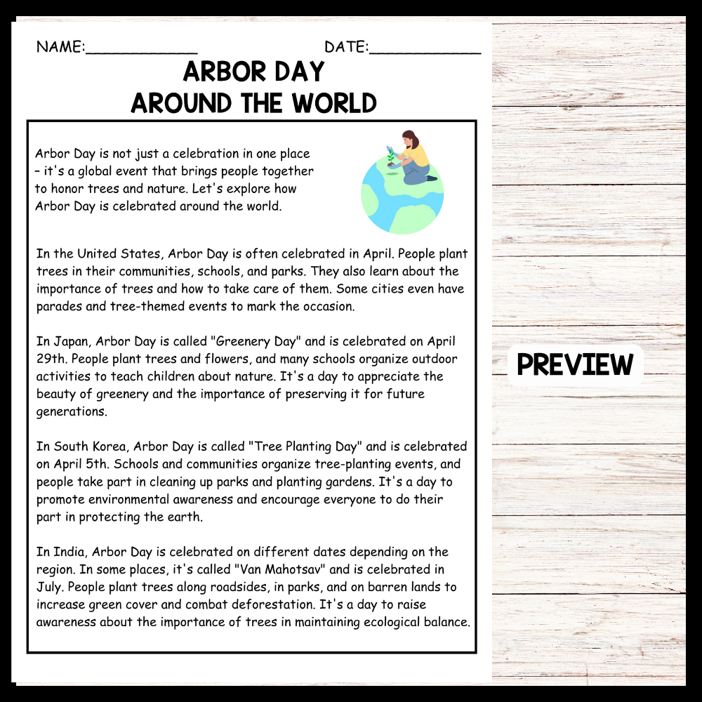 - "ARBOR DAY AROUND THE WORLD" ARBOR DAY Reading Comprehension