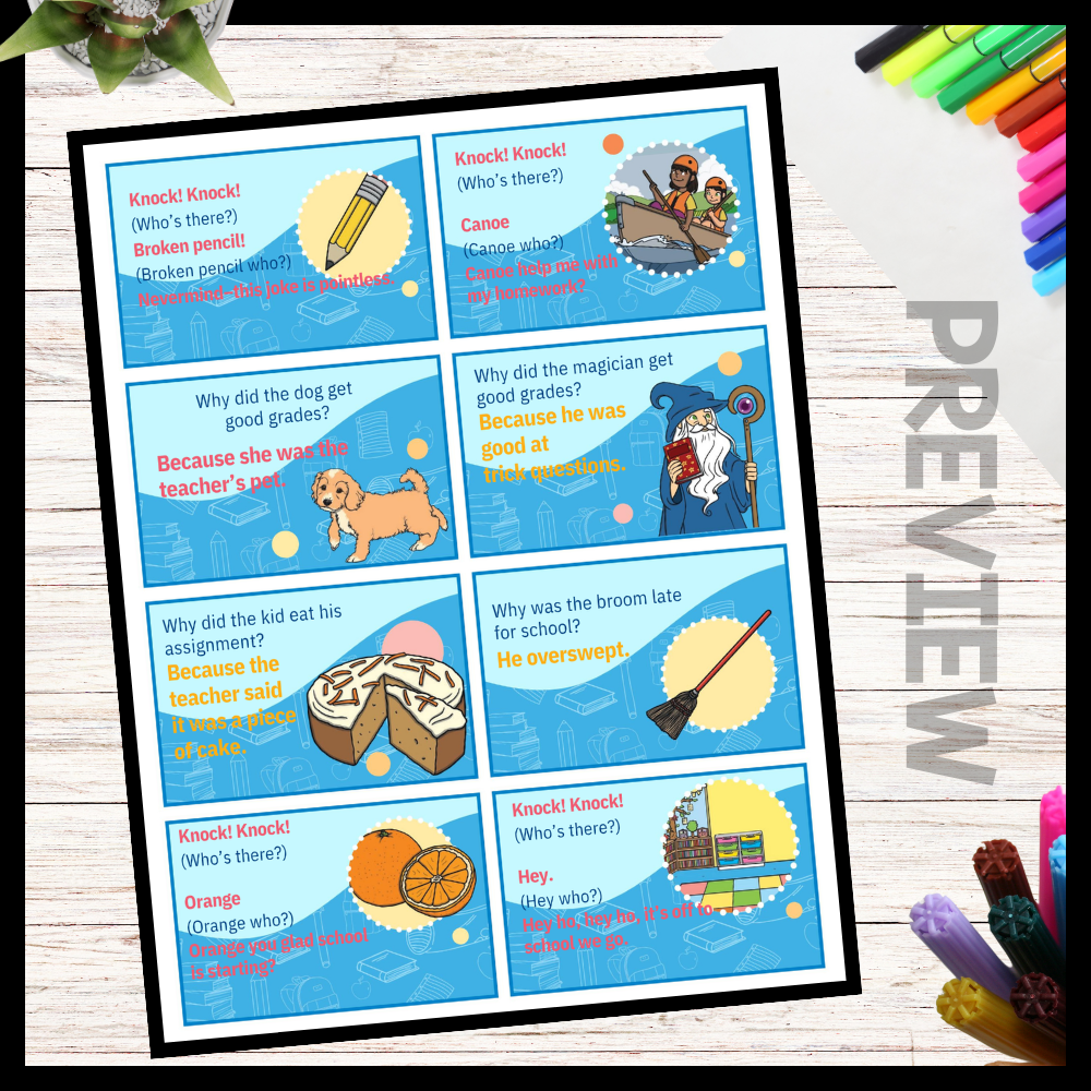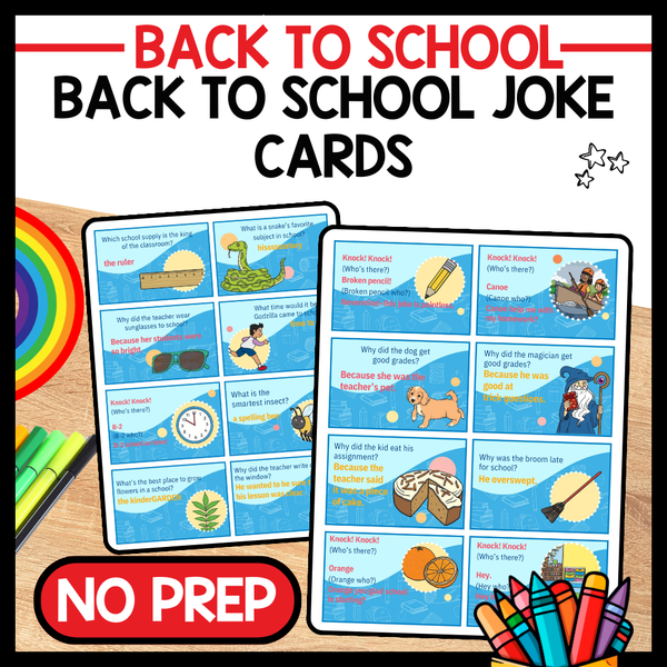 Introduce some laughter to the start of the school year with our Back to School Joke Cards. Distribute these cards to students for a fun activity that also allows you to assess their reading fluency when they read them aloud.