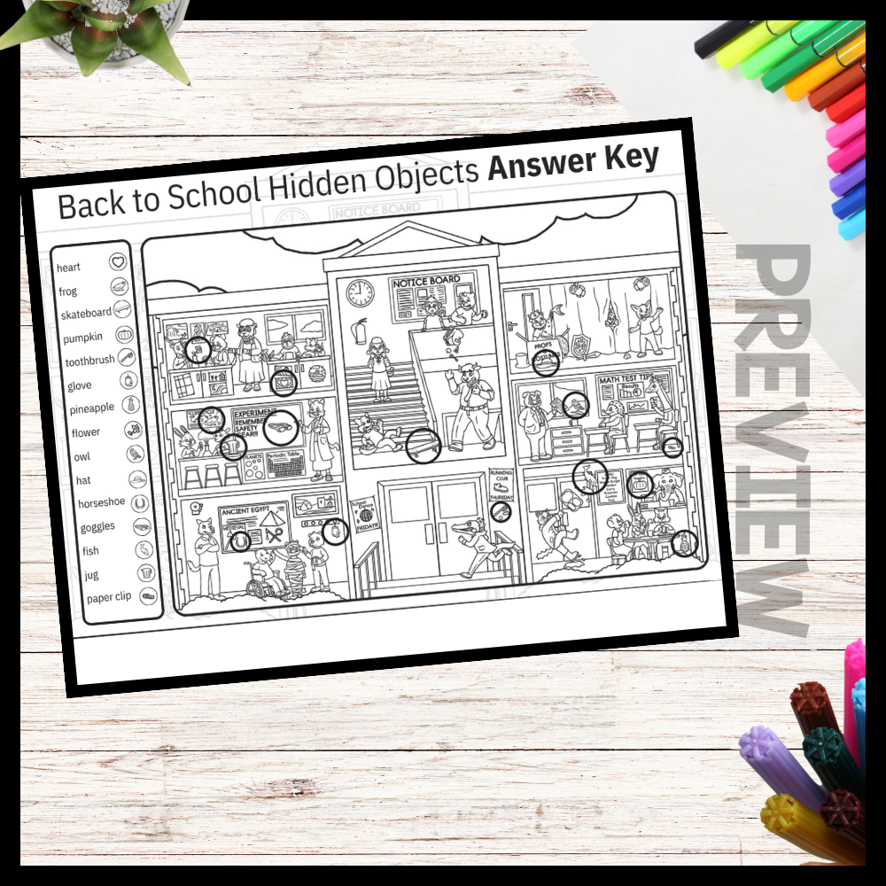 - Back to School Hidden Objects activity