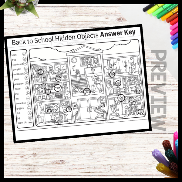 Students will love this adorable Back to School Hidden Objects Activity! Hidden within the school scene are objects for students to find. This activity is great for young children to strengthen their visual discrimination skills