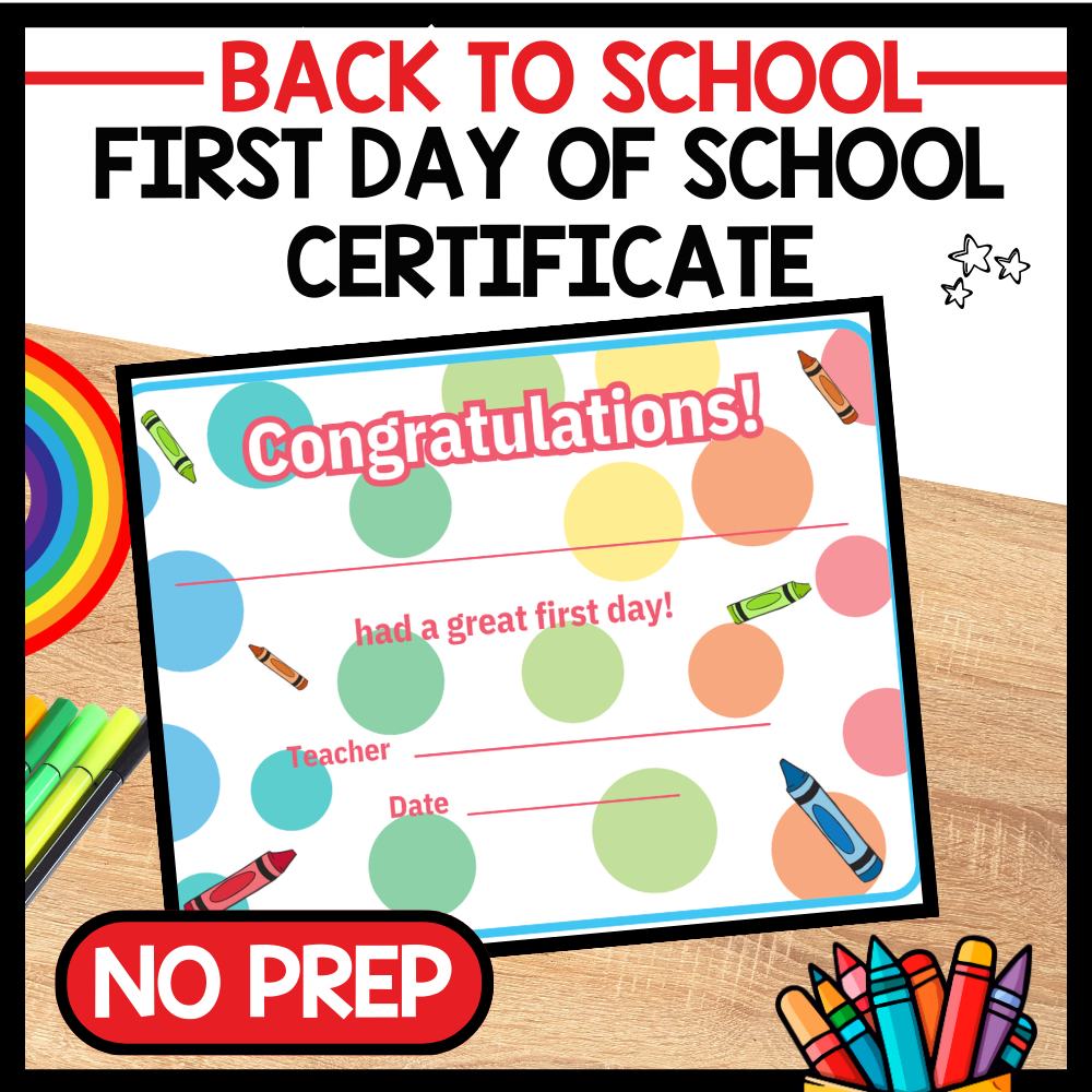 Using the First Day of School Certificate is a simple and meaningful way to celebrate your students and create a welcoming classroom environment.