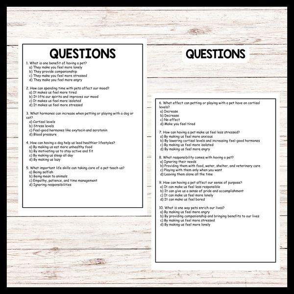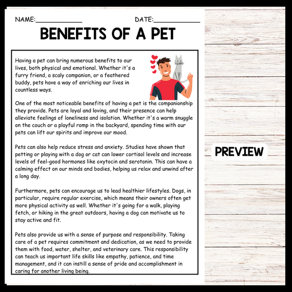 - "BENEFITS OF A PET" NATIONAL PET DAY Reading Comprehension