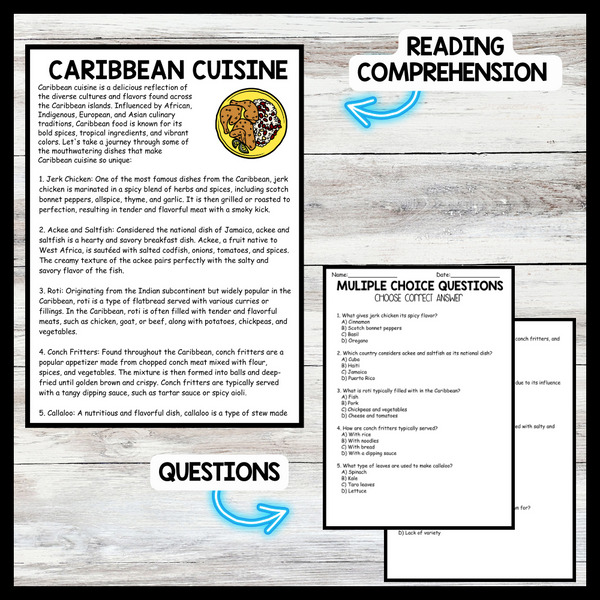 Grow your students knowledge with this Nonfiction Reading Comprehension Passage - Caribbean Heritage Month - Caribbean Cuisine
